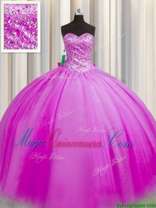, Really Puffy Lilac Sweetheart Lace Up Beading Quinceanera Gowns Sleeveless