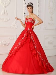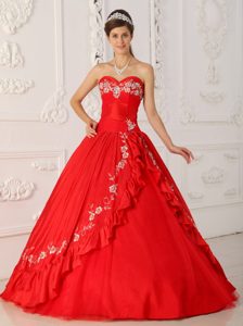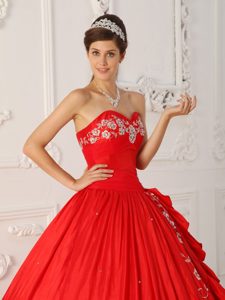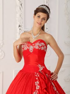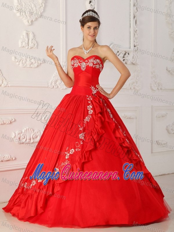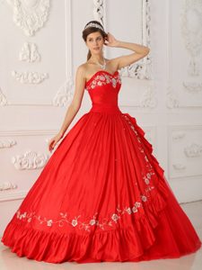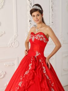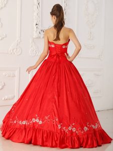 Red A-line Quinceanera Dress with White Embroidery About 200