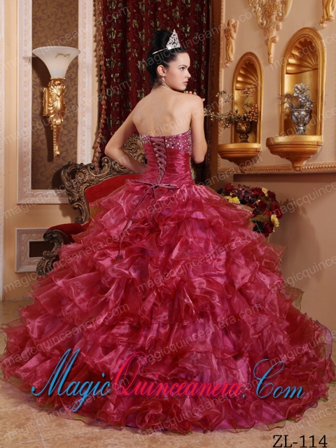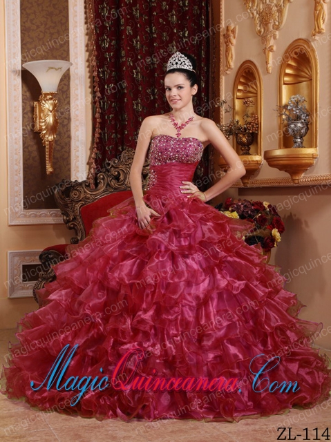 best seller dresses for a quinceanera in the united states, Red Ball Gown Strapless Floor-length Organza Beading Popular Quinceanera Dresses