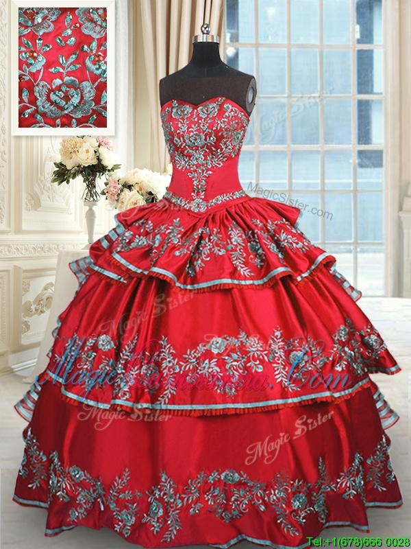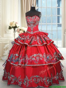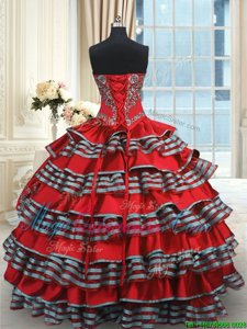 Red Ball Gowns Taffeta Sweetheart Sleeveless Embroidery and Ruffled Layers Floor Length Lace Up Quinceanera Gown