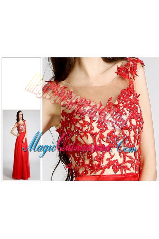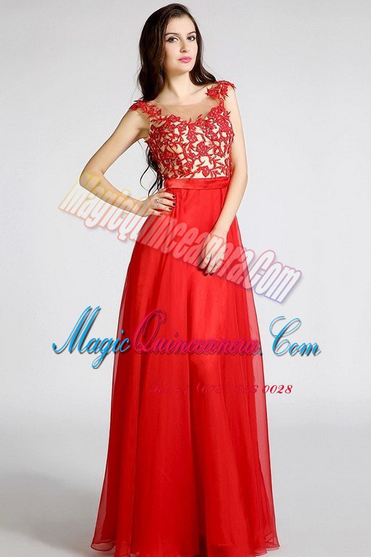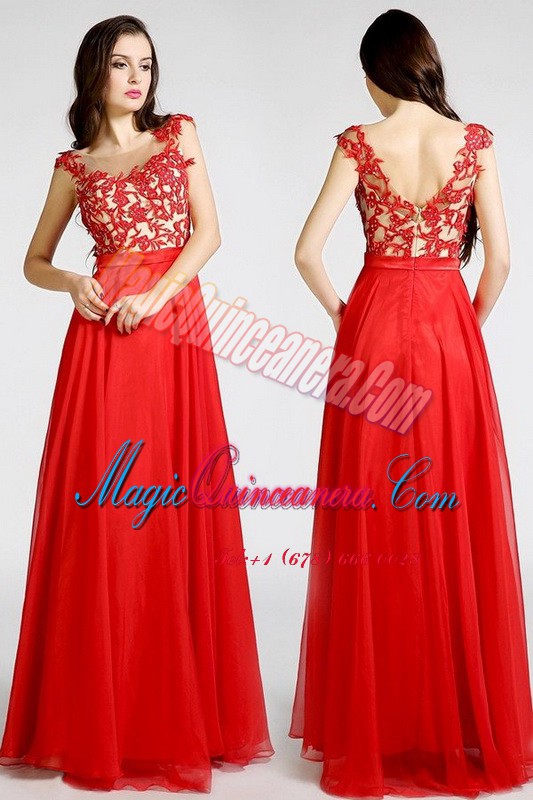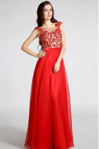 Red Chiffon Zipper Bateau Sleeveless Floor Length Mother Of The Bride Dress Beading and Appliques