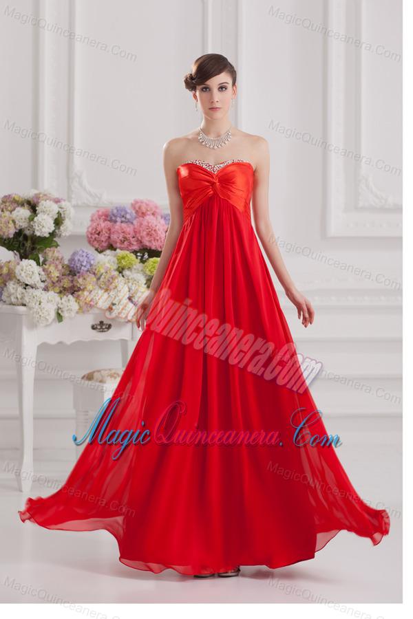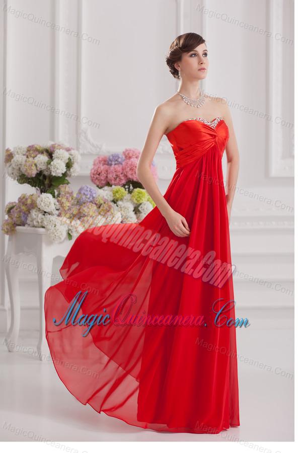 Red Empire Chiffon Beaded Decorate Dresses for Dama with Sweetheart
