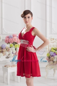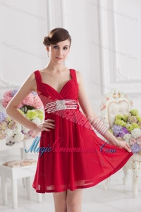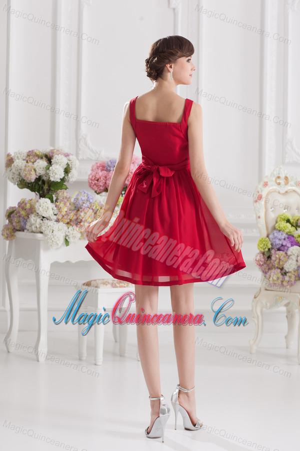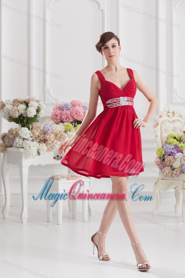 Red Empire Straps Dama Dresses with Ribbons and Beading