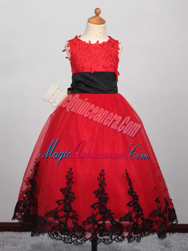 Red Lace Up Bateau Appliques Pageant Dress for Womens Tulle Sleeveless