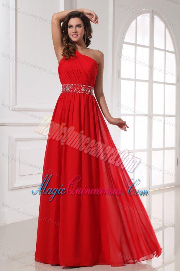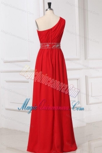 Red One Shoulder Beaded Decorate Waist Floor-length Dresses for Dama