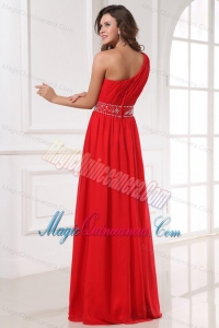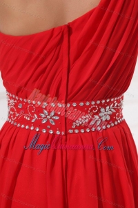 new york short prom dresses, Red One Shoulder Beaded Decorate Waist Floor-length Dresses for Dama