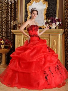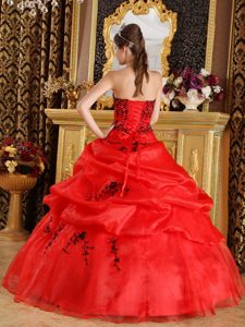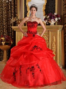 Red Organza Dress For Quinceanera with Black Embroidery in Auckland
