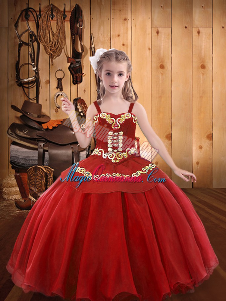 Red Organza Lace Up Pageant Dress Toddler Sleeveless Floor Length Embroidery and Ruffles - Magic Quinceanera