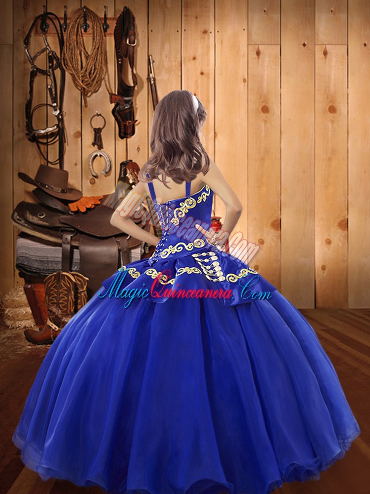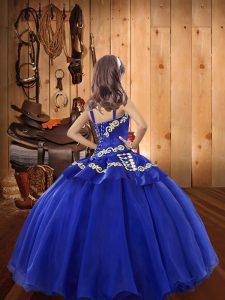 Red Organza Lace Up Pageant Dress Toddler Sleeveless Floor Length Embroidery and Ruffles