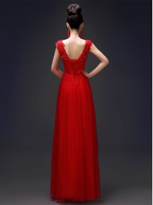 Red Scoop Neckline Beading and Appliques Mother Of The Bride Dress Sleeveless Lace Up