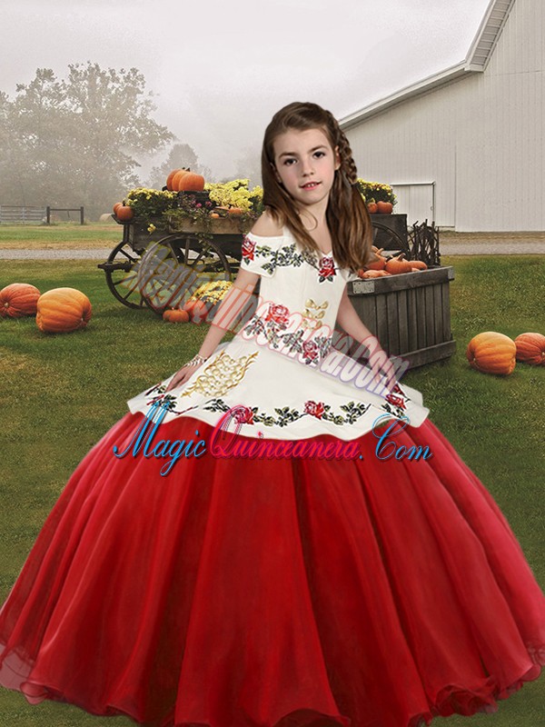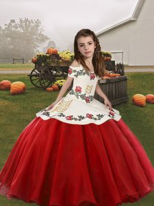 Red Sleeveless Embroidery Floor Length Little Girl Pageant Gowns