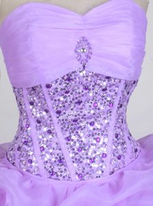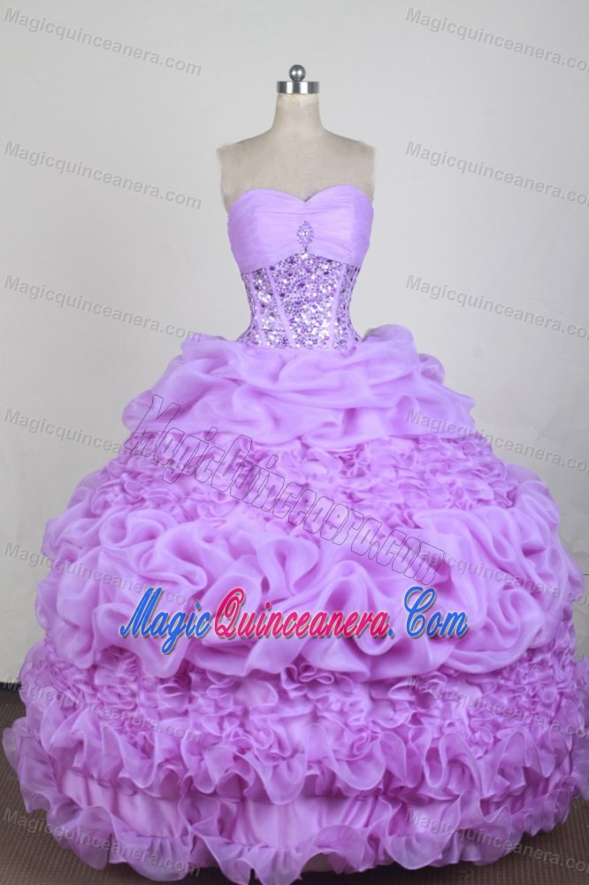 Rolling and Pick-up Sweetheart Beading Lavender Quinces Dresses
