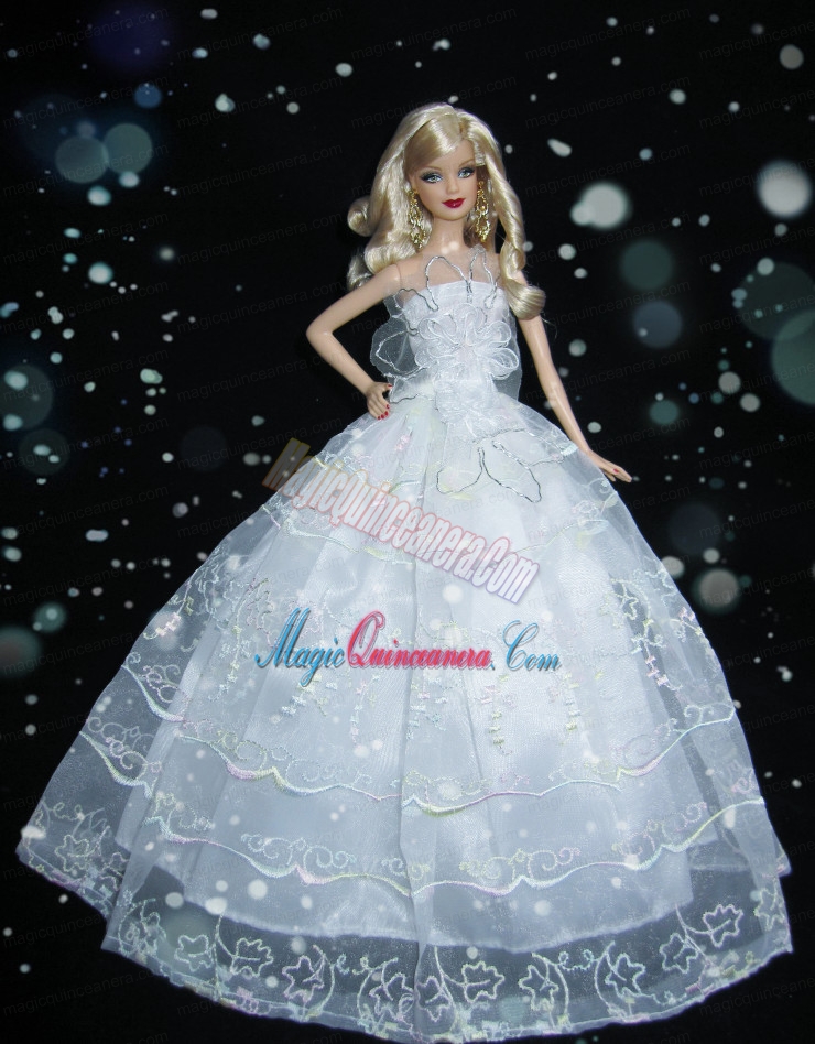 Romantic Baby Blue Strapless Lace Fashion Wedding Dress for Noble Barbie