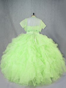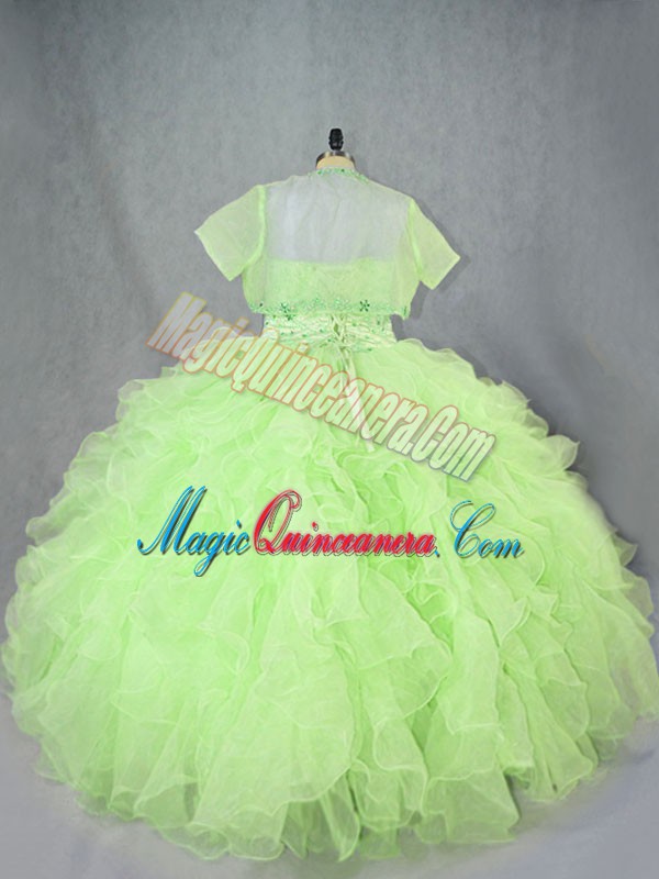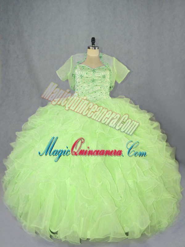 Romantic Ball Gowns Vestidos de Quinceanera Yellow Green Sweetheart Organza Sleeveless Floor Length Lace Up