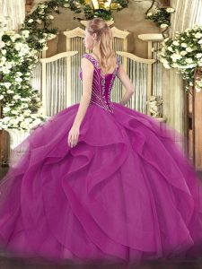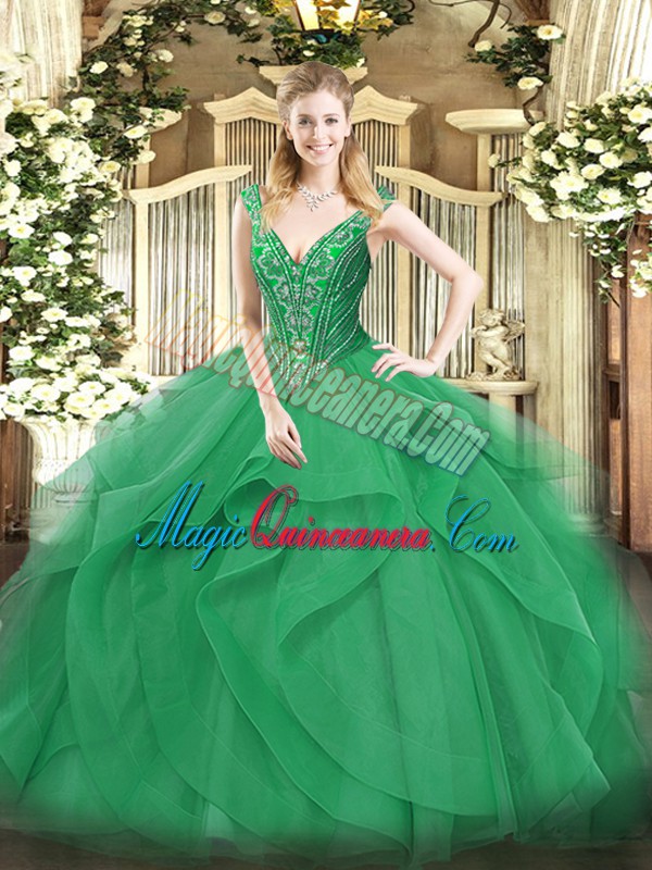 Romantic Beading and Ruffles Vestidos de Quinceanera Turquoise Lace Up Sleeveless Floor Length