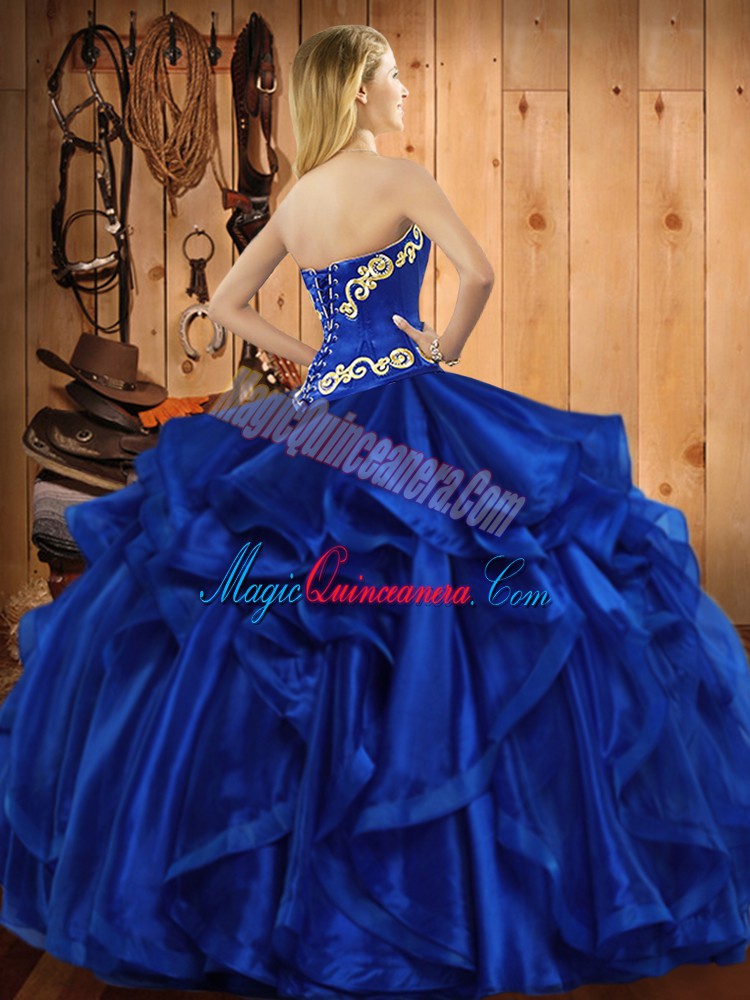 Inexpensive Sleeveless Embroidery and Ruffles Lace Up Glitz Pageant Dress