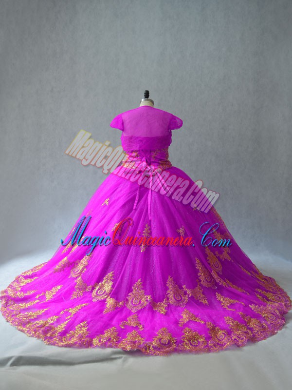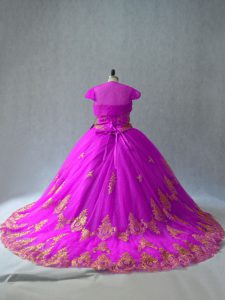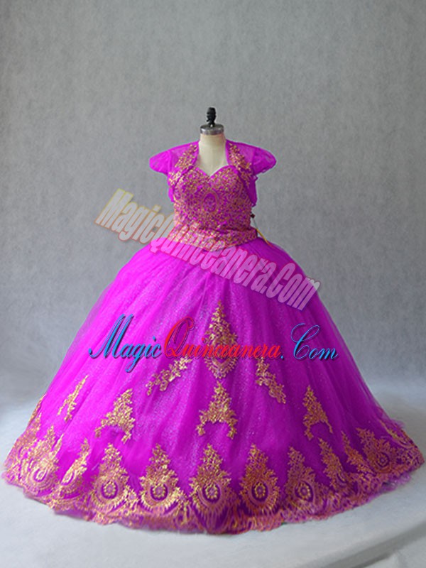 , Romantic Fuchsia Sleeveless Beading and Appliques Lace Up 15 Quinceanera Dress