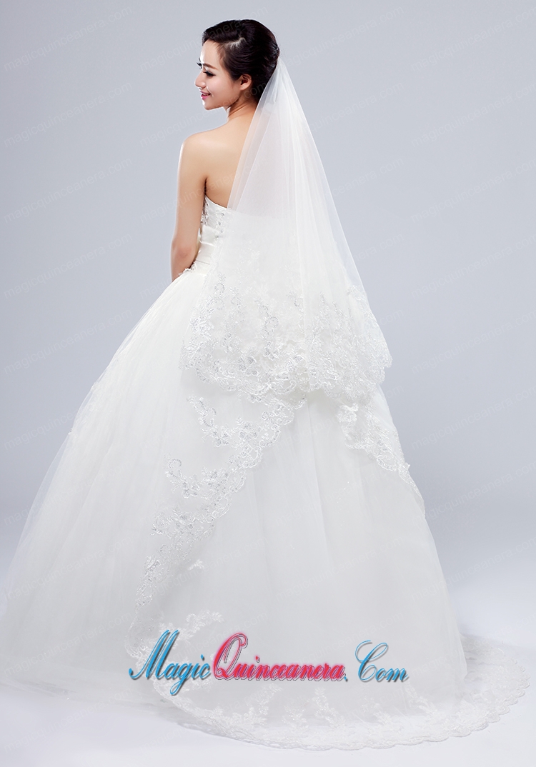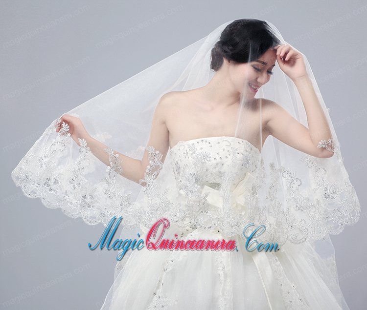 Romantic Lave Edge White Two-Tier Fingertip Bridal Veils