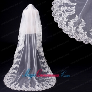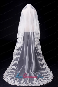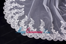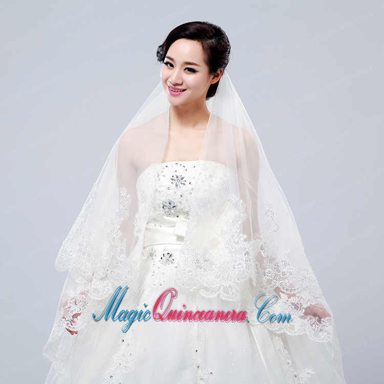 , Romantic Lave Edge White Two-Tier Fingertip Bridal Veils
