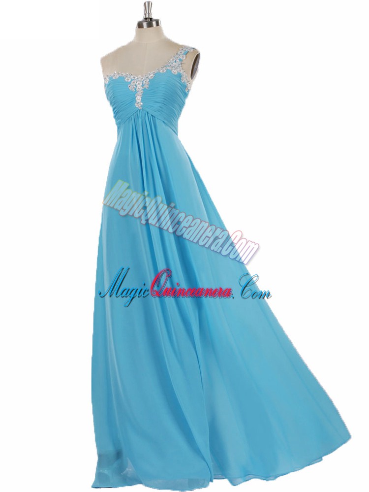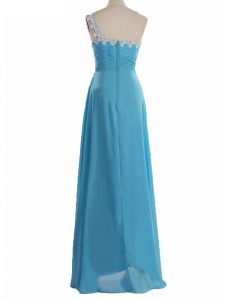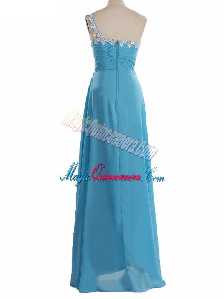Romantic One Shoulder Sleeveless Zipper Quinceanera Court Dresses Aqua Blue Chiffon
