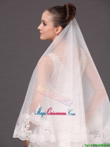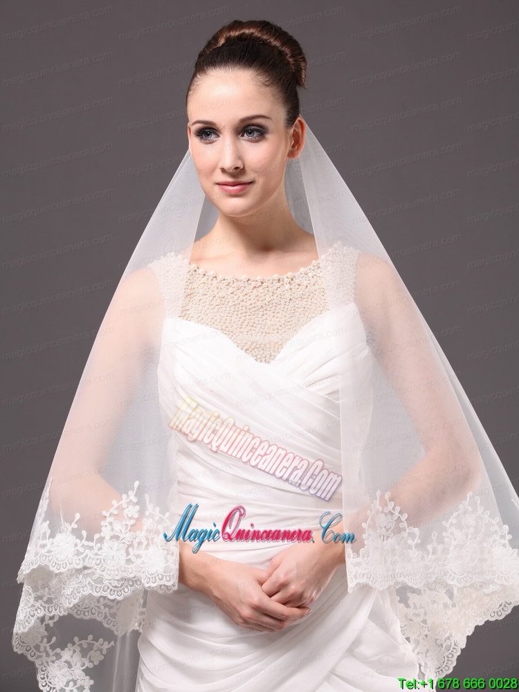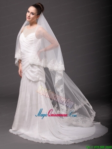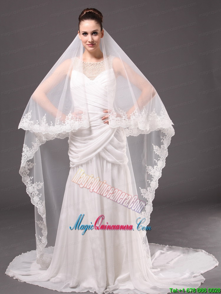 Romantic One-tier Cathedral Wedding Veil With Lace Applique Edge