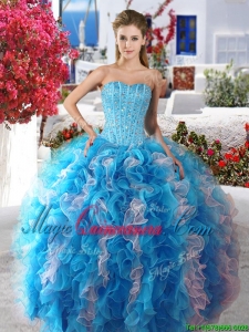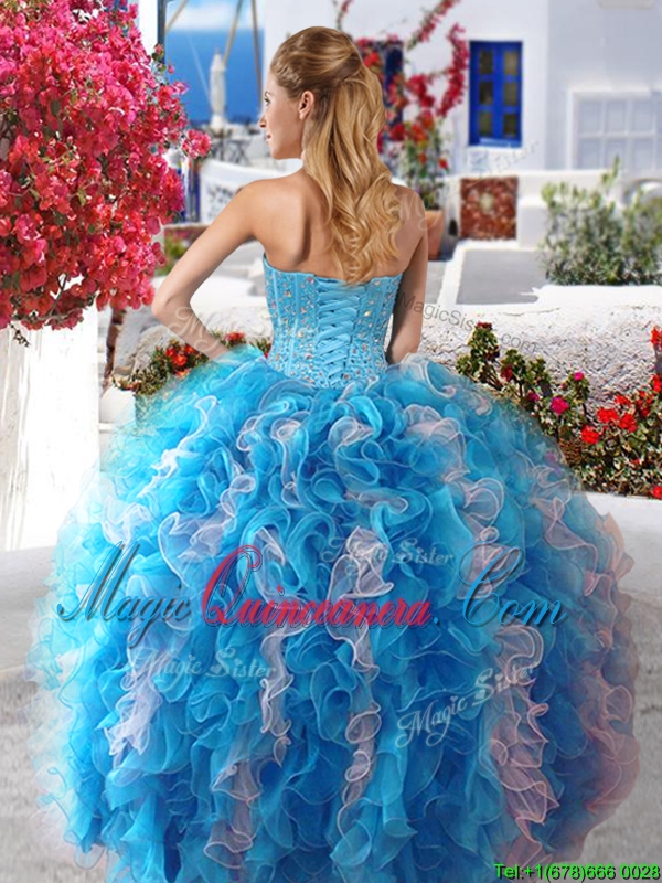 Romantic Rose Pink and White Organza Quinceanera Dress with Beading and Ruffles