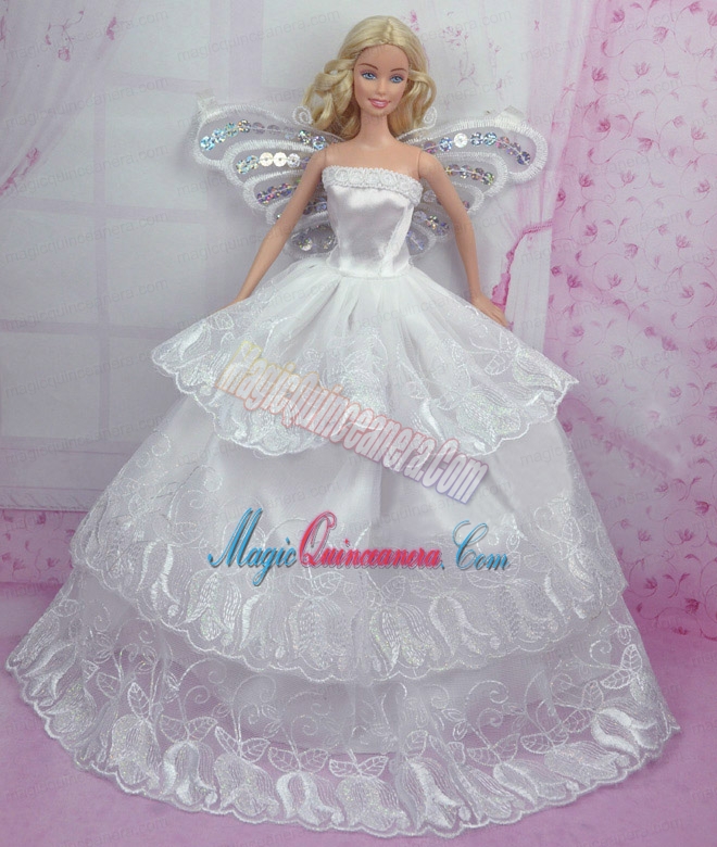 , Romantic Wedding Dress With Embroidery Made to Fit the Barbie Doll