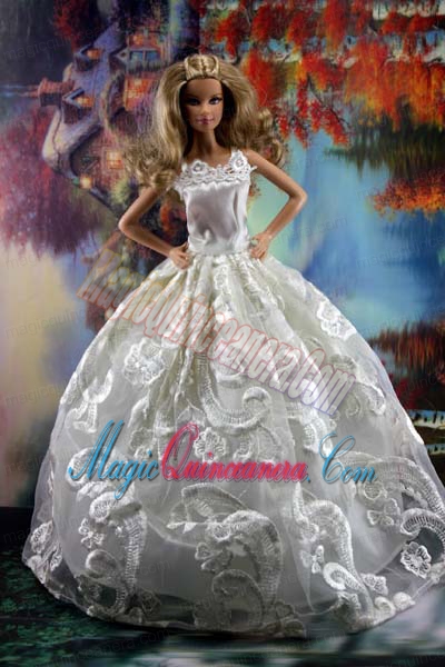 Romantic White Gown With Embroidery Dress For Barbie Doll