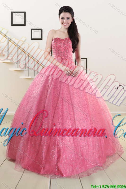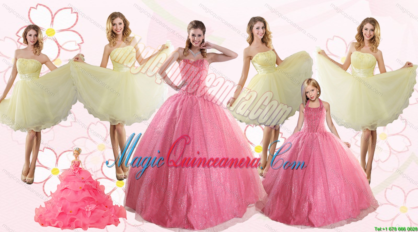 , Rose Pink Beading Ball Gown Quinceanera Dress and Strapless Knee Length Dama Dresses and Halter Top Litter Girl Dres