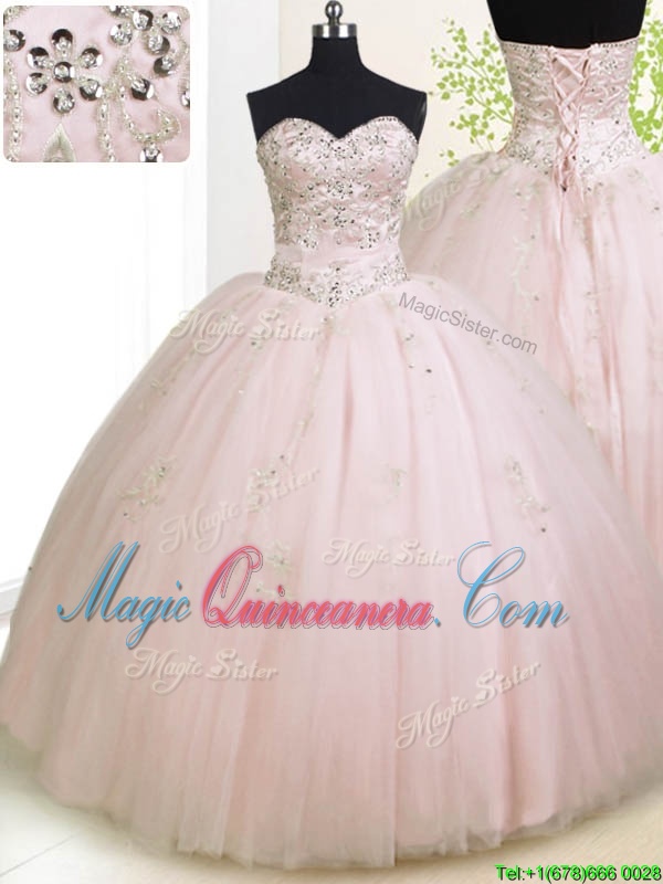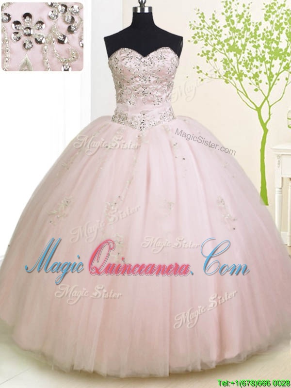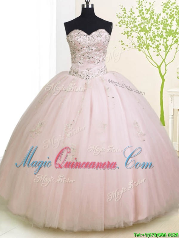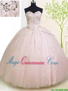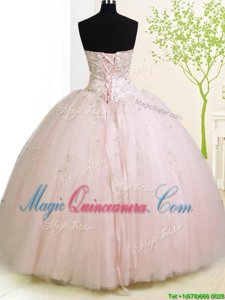 Rose Pink Sleeveless Beading and Appliques Floor Length 15 Quinceanera Dress