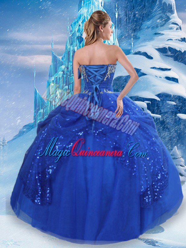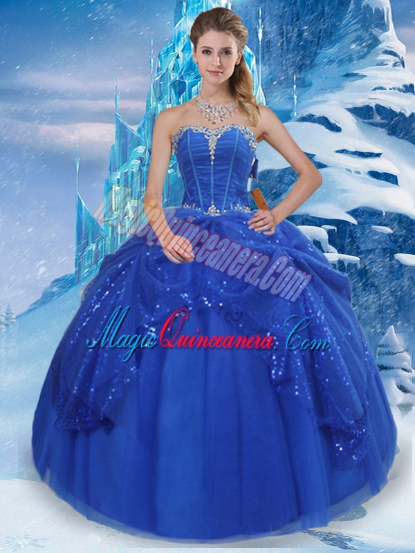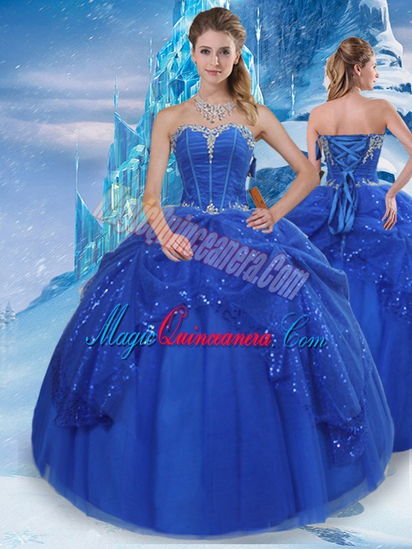 Royal Blue Ball Gowns Sweetheart Sleeveless Tulle Floor Length Lace Up Beading and Pick Ups 15th Birthday Dress