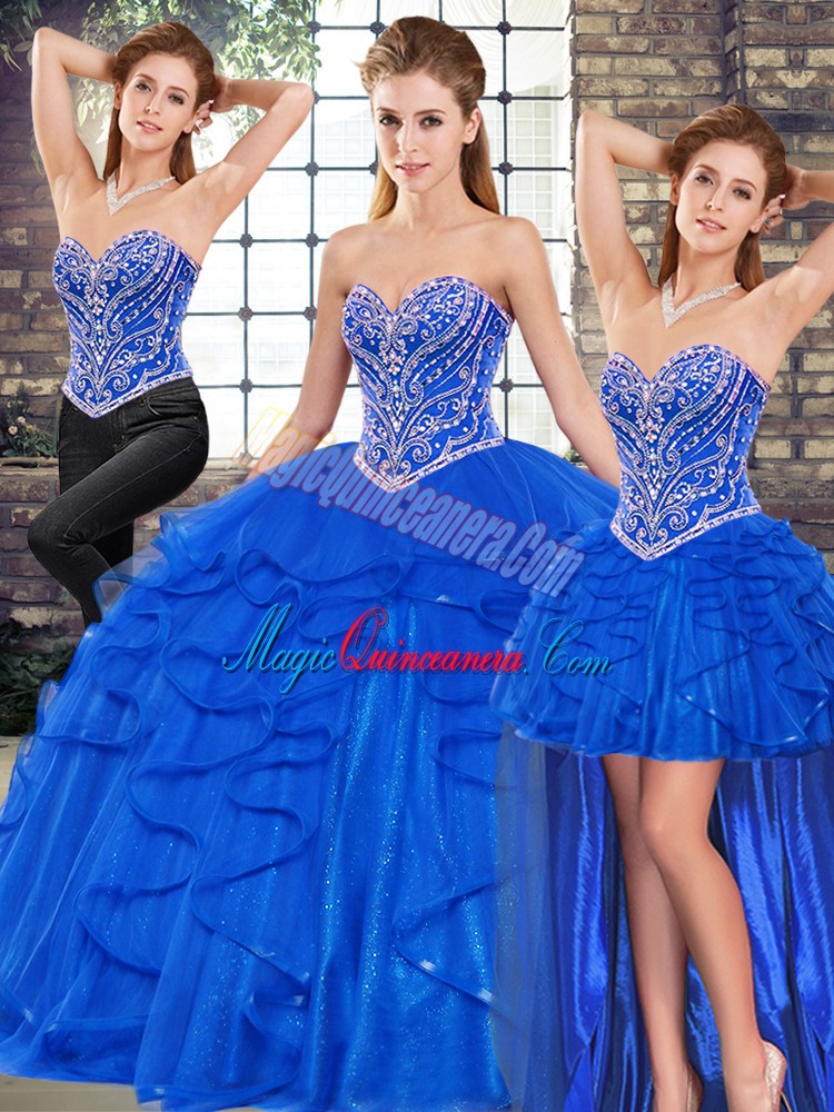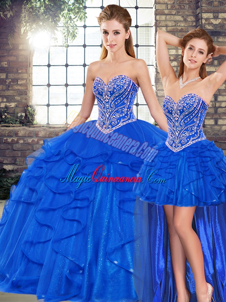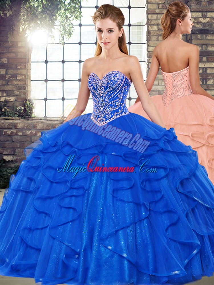 Royal Blue Sleeveless Beading and Ruffles Floor Length Quinceanera Gown