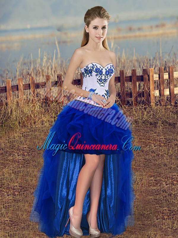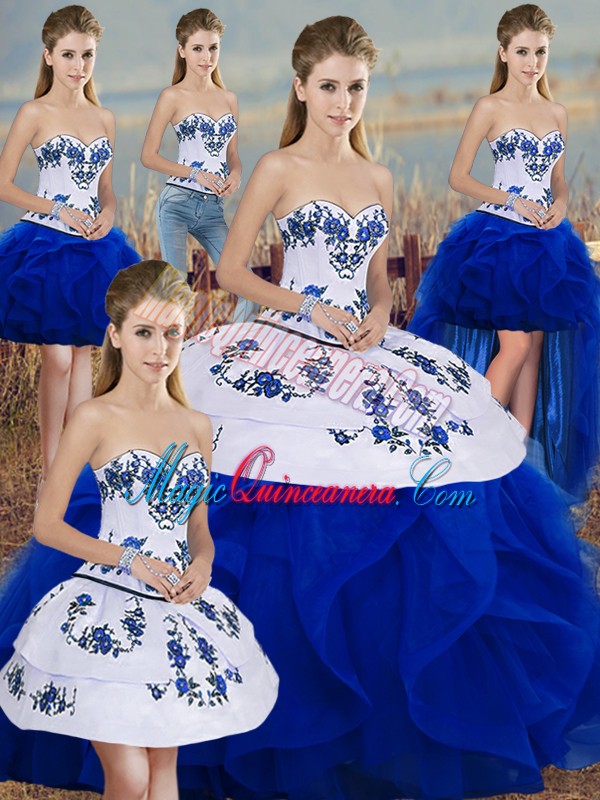 , Royal Blue Sleeveless Embroidery and Ruffles and Bowknot Floor Length Sweet 16 Dress