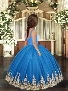 , Royal Blue Sleeveless Embroidery Floor Length Pageant Dress for Teens