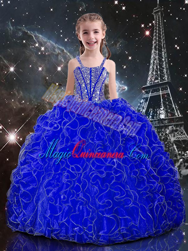 Royal Blue Straps Neckline Beading and Ruffles Kids Formal Wear Sleeveless Lace Up