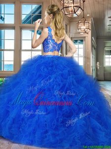 Royal Blue Vestidos de Quinceanera Tulle Brush Train Sleeveless Lace and Ruffles