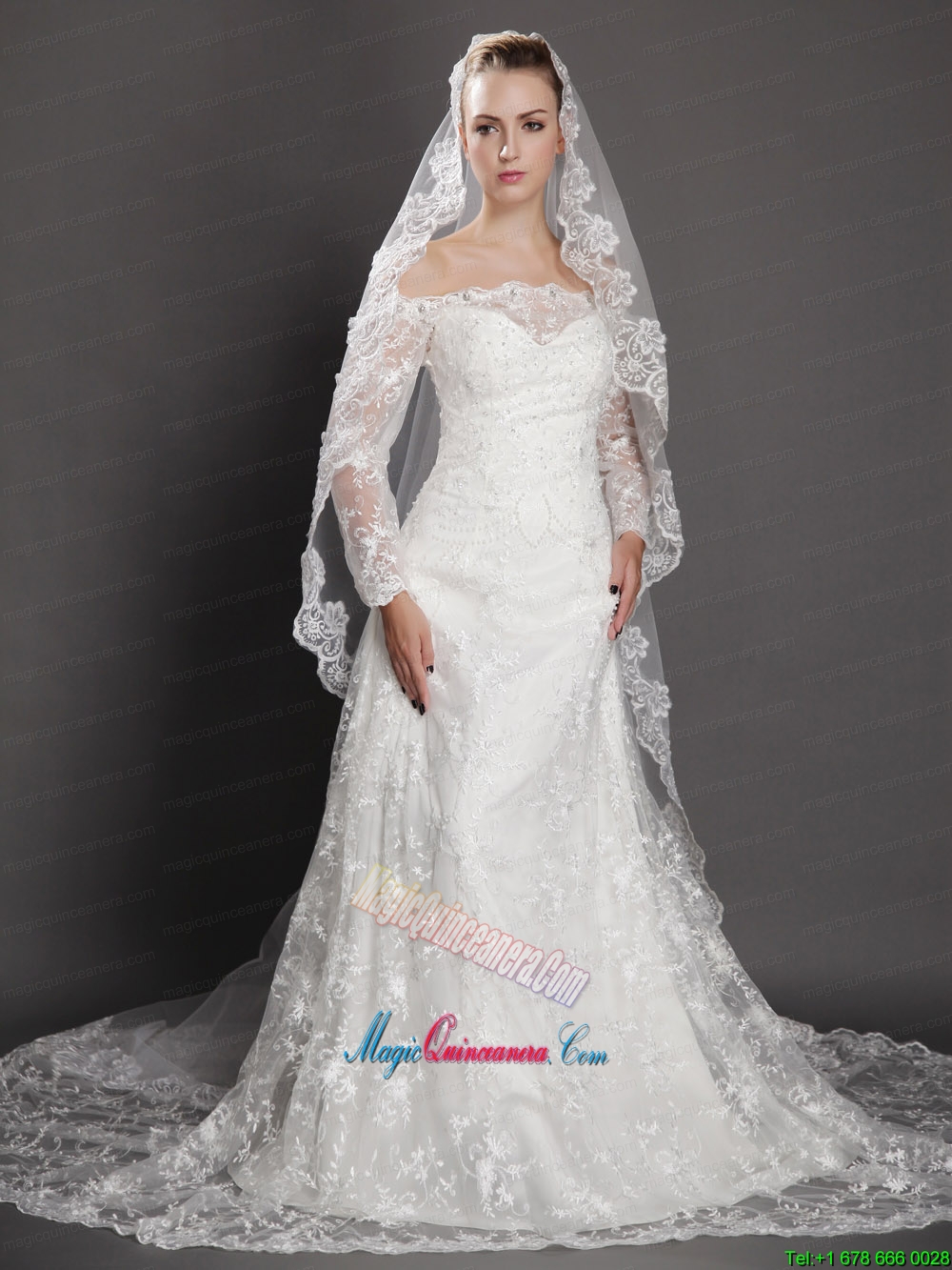 , Royal Lace Appliques Tulle Bridal Veil