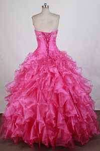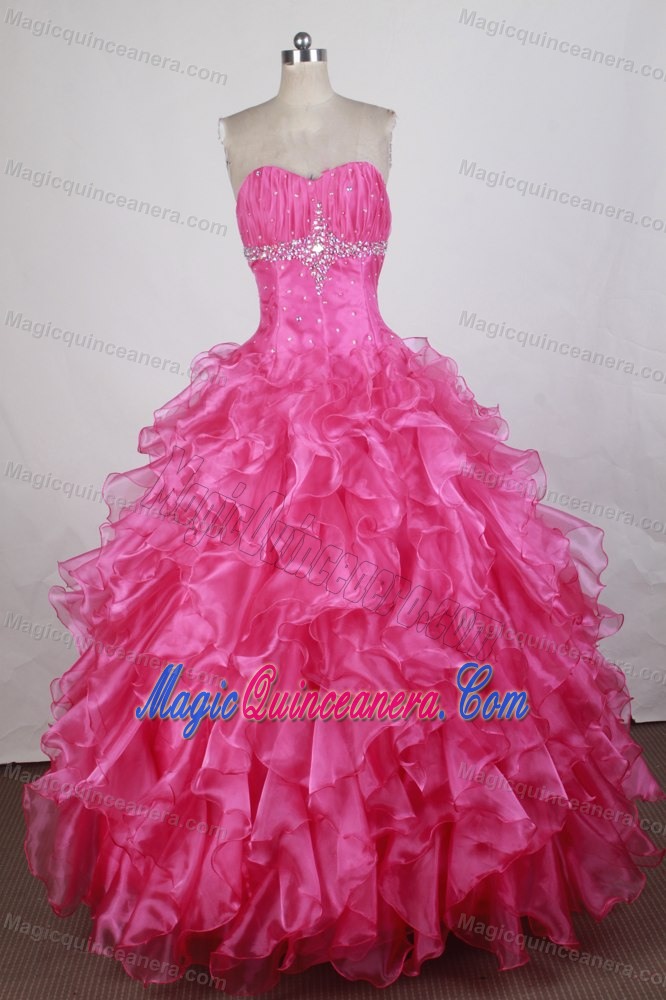 lace up snow white quinceanera dress, Ruched Sweetheart Ruffles and Beading Pink Quinceanera Dresses