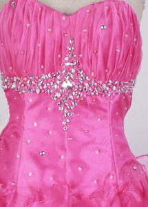 Ruched Sweetheart Ruffles and Beading Pink Quinceanera Dresses