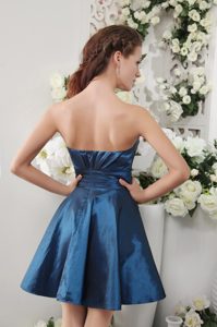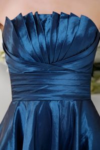 Ruched Taffeta Navy Blue Strapless Dama Dresses with Mini Length