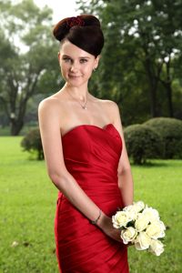 on sale mini-length prom dresses for dama, Ruches Accent Wine Red Taffeta Dresses for Damas of Mini Length