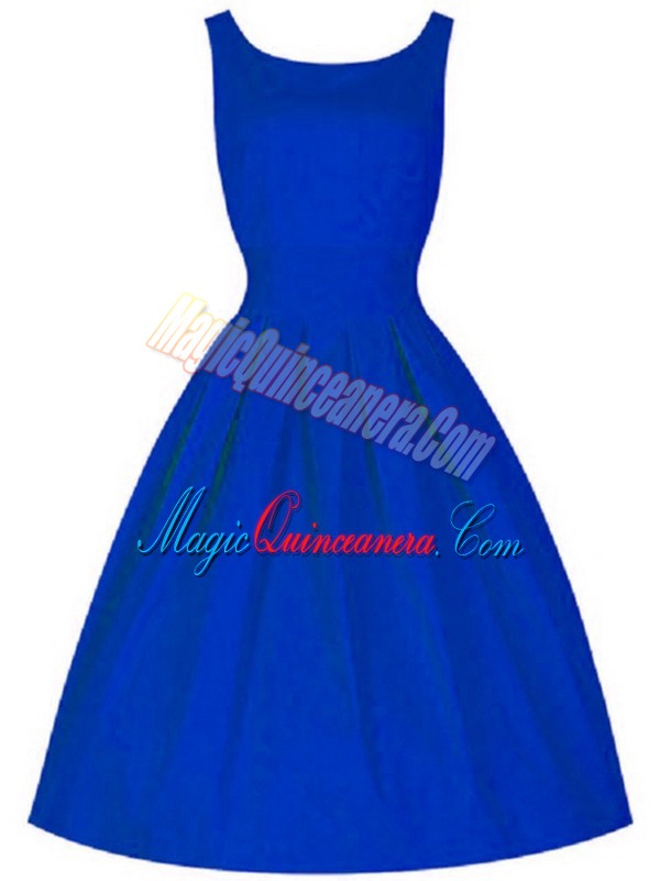 Ruching Vestidos de Damas Royal Blue Lace Up Sleeveless Knee Length