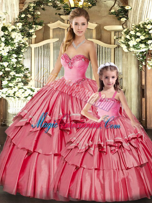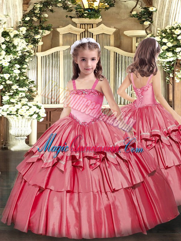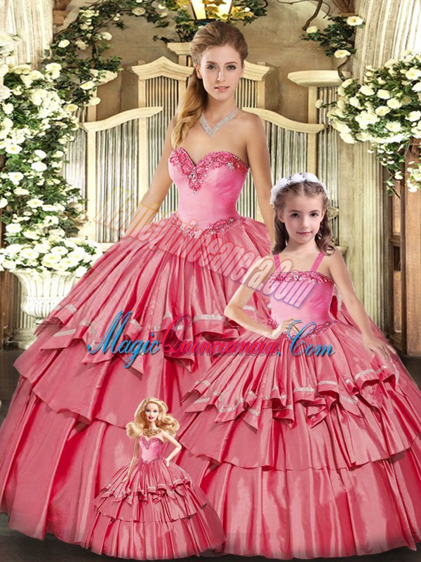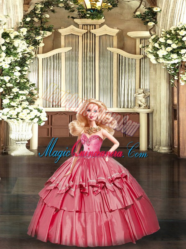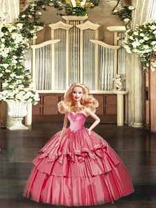 , Ruffled Layers Quinceanera Gowns Watermelon Red Lace Up Sleeveless Floor Length