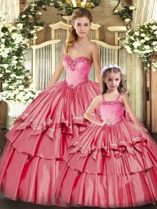 Ruffled Layers Quinceanera Gowns Watermelon Red Lace Up Sleeveless Floor Length