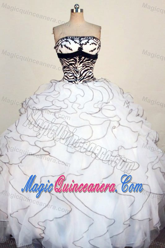 Ruffled White Zebra and Organza Appliques Quinceanera Gown