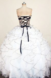 impressive appliqued quinceanera dress in mendoza, Ruffled White Zebra and Organza Appliques Quinceanera Gown