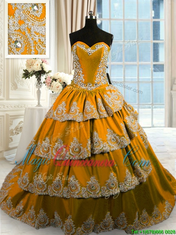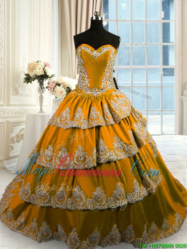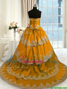 Ruffled With Train Brown Sweet 16 Quinceanera Dress Sweetheart Sleeveless Court Train Lace Up