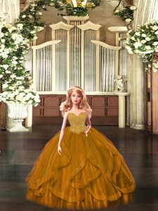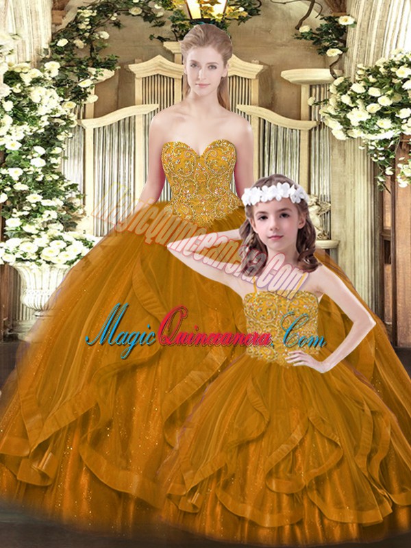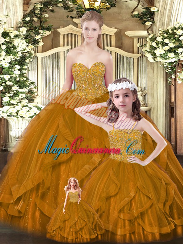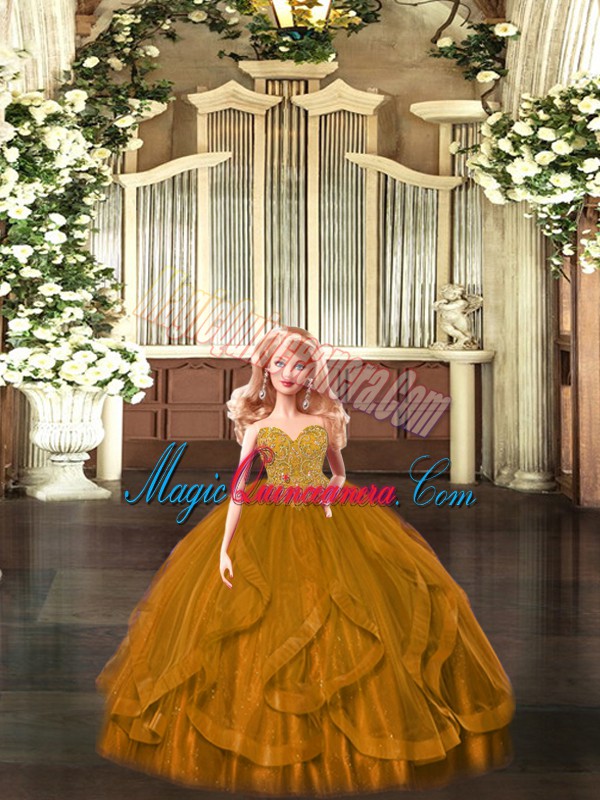 Rust Red Sleeveless Beading and Ruffles Floor Length Sweet 16 Quinceanera Dress