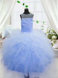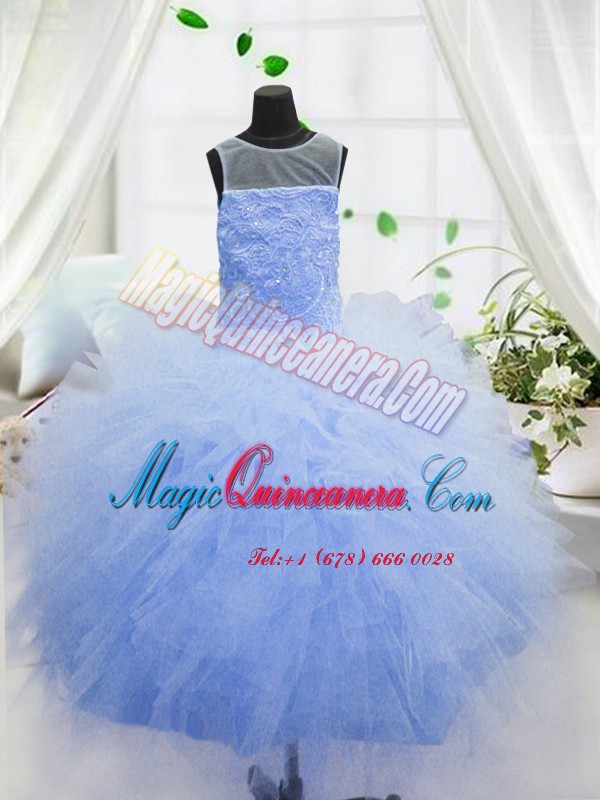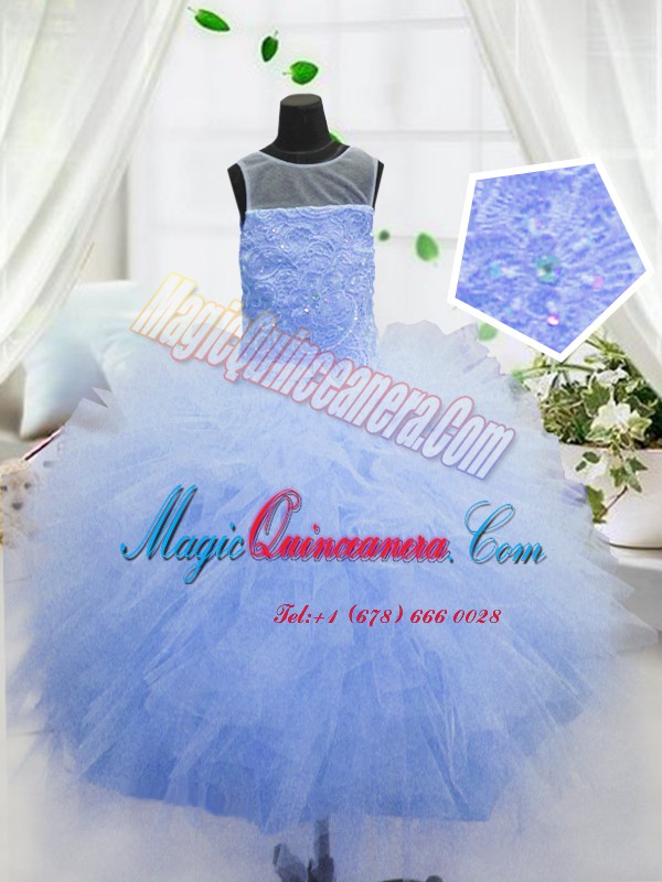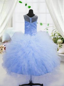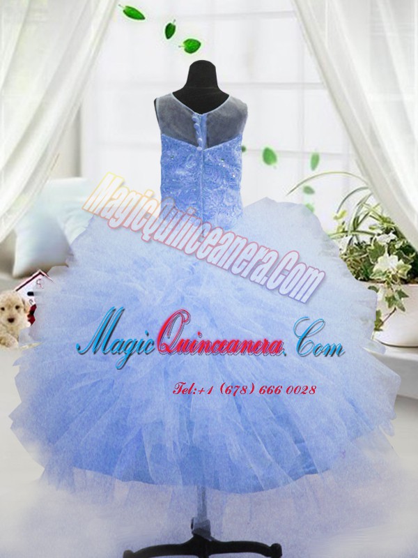 Scoop Baby Blue Sleeveless Beading and Ruffles Floor Length Kids Formal Wear