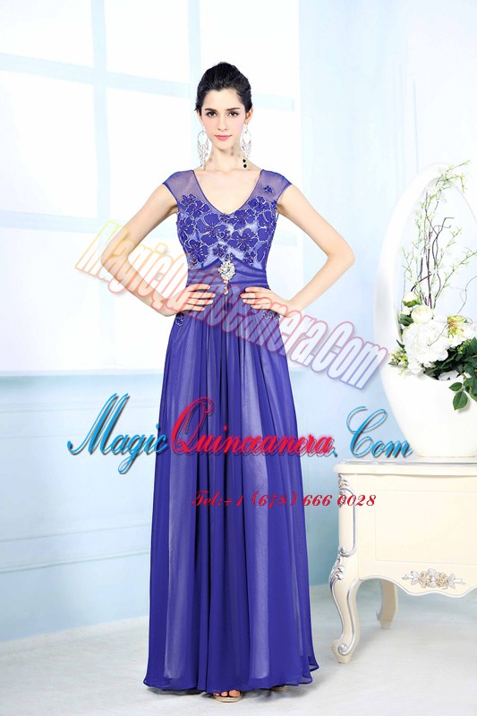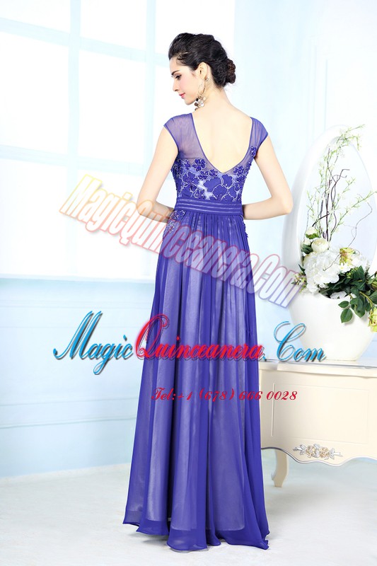 Scoop Blue Sleeveless Chiffon Zipper Mother Of The Bride Dress for Prom and Party